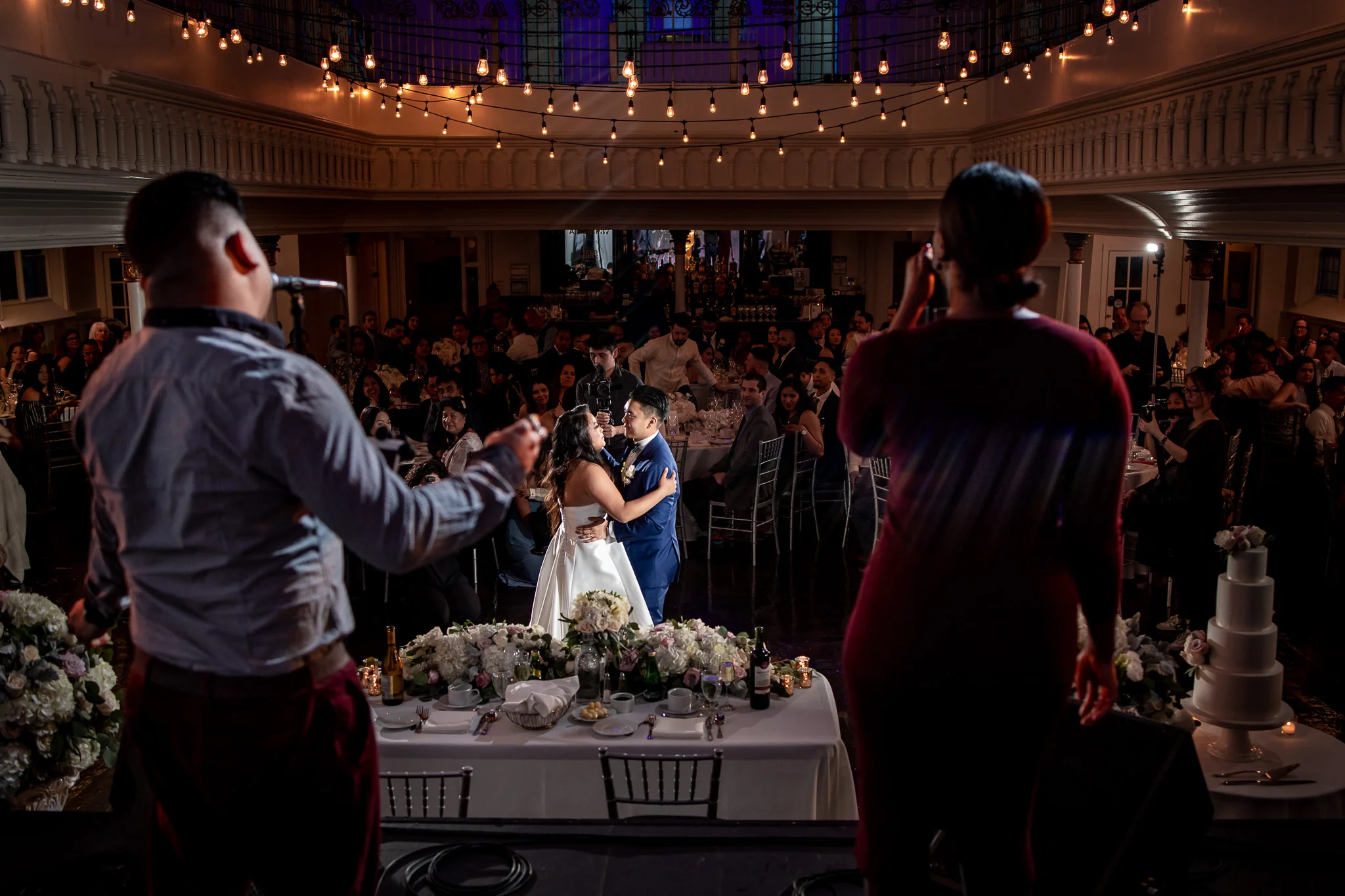 Now the reception at Simone and Angelo’s wedding was definitely one for the books with multiple surprises planned for Simone all throughout the evening! From a surprise K-Pop dance performance from Angelo and the bridal party, to an emotional and surprise performance from Simone’s rock star brother for Simone’s dance with her mother. It was an insanely amazing experience seeing all the guests on the dance floor cheering him on as he delivered an unbelievable performance along with the BPM Krew band and Fusion Events. And right before opening the dance floor to all the guests, Simone and Angelo invited friends and family to join them for a money dance, where guests pinned dollar bills to the couple’s clothes in exchange for a dance with them. There was no shortage of participants as the guests queued up for their turn. Once the dance floor opened up, the band kicked it up a notch and had everyone dancing up a storm. And for those who needed to refuel with a midnight snack, a Glory Hole donut wall and a table piled up high with McDonalds was available up on the mezzanine to make sure all the guests can keep celebrating these amazing newly weds all night long. What a day, Simone and Angelo. Thank you so much for inviting us to be a part of your beautiful day!